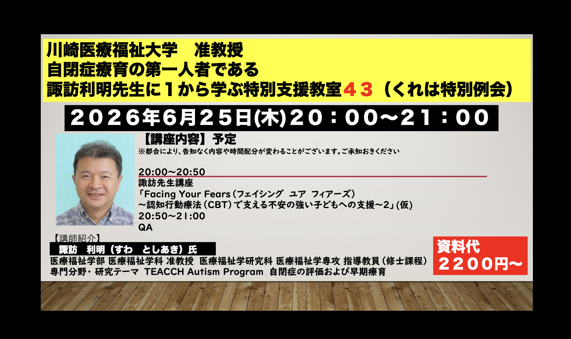 自閉症療育の第一人者である 川崎医療福祉大学の 諏訪利明先生から認知行動療法(CBT)で支える 不安の強い子どもへの支援…