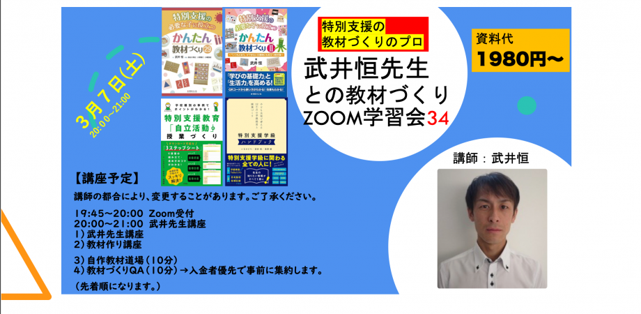 【特別支援教育】 3月7日(土)20時〜21時 武井恒先生との教材づくりZOOM学習会34