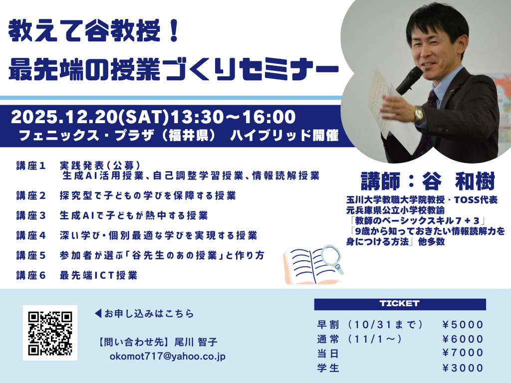 生成AI活用授業、自己調整学習授業、情報読解授業の3つの実践発表があります。探究型や深い学び・個別最適な学びを実現する授…