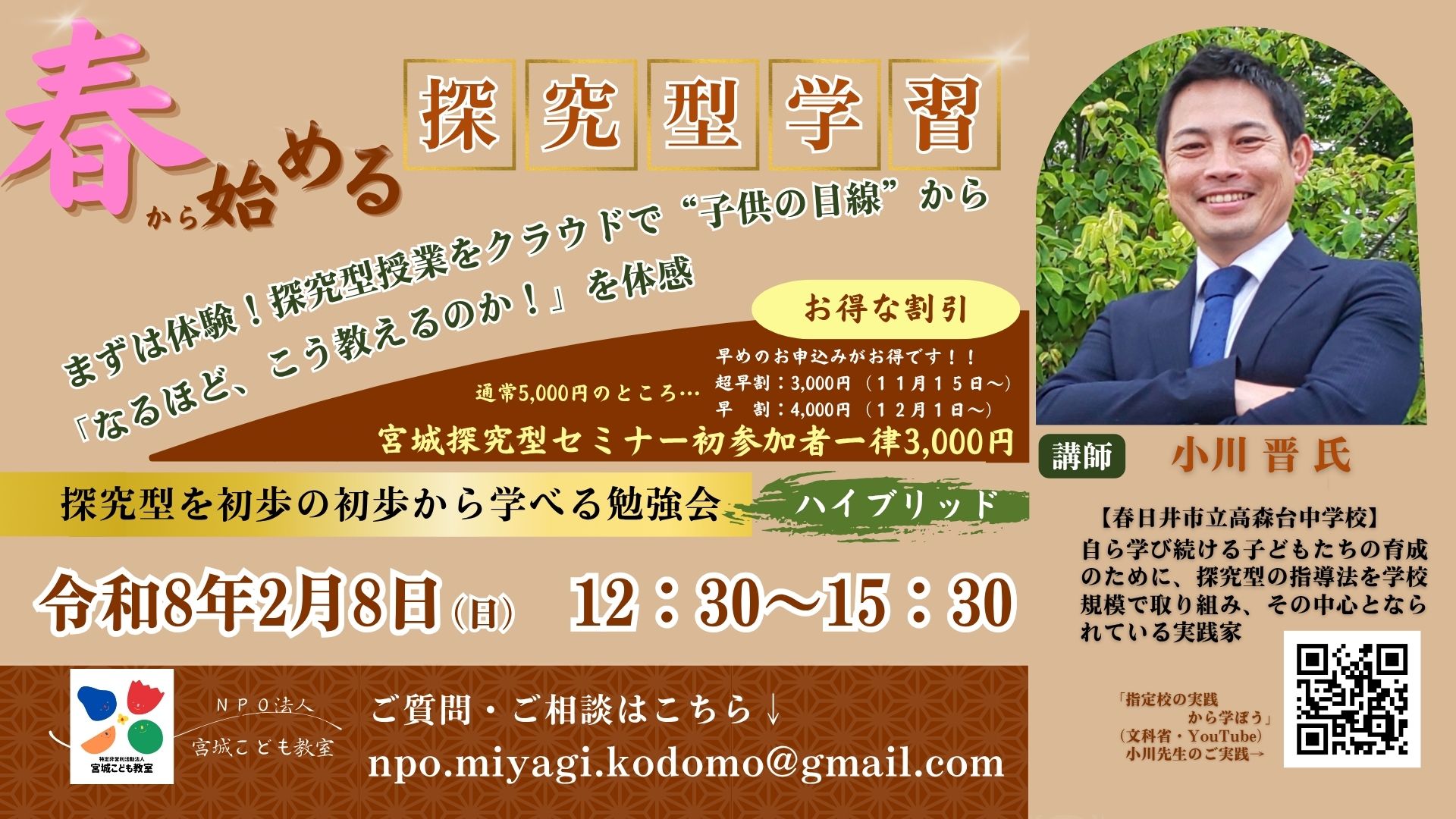 今から探究型授業を実践してみたい方必見!本当に力の付く探究型授業を小川晋氏に徹底解説していただきます。