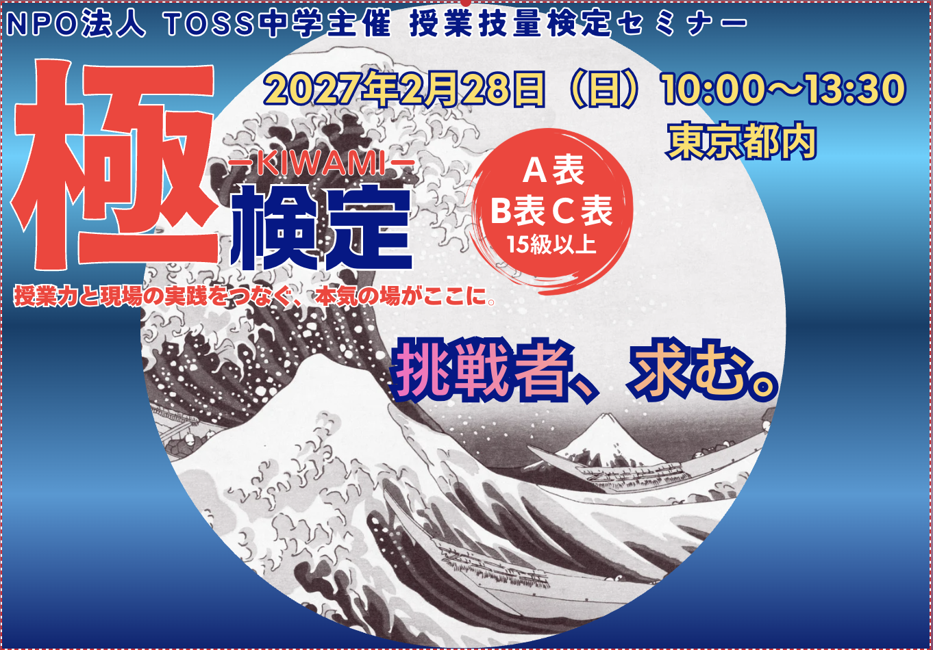 TOSS中学最高峰の講師陣による授業技量検定セミナーです。