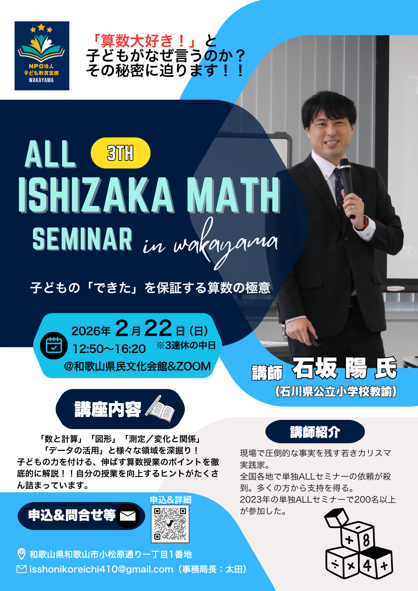 分野特化!!第3回ALL石坂算数セミナーin和歌山〜子どもの「できた」を保証する算数の極意〜